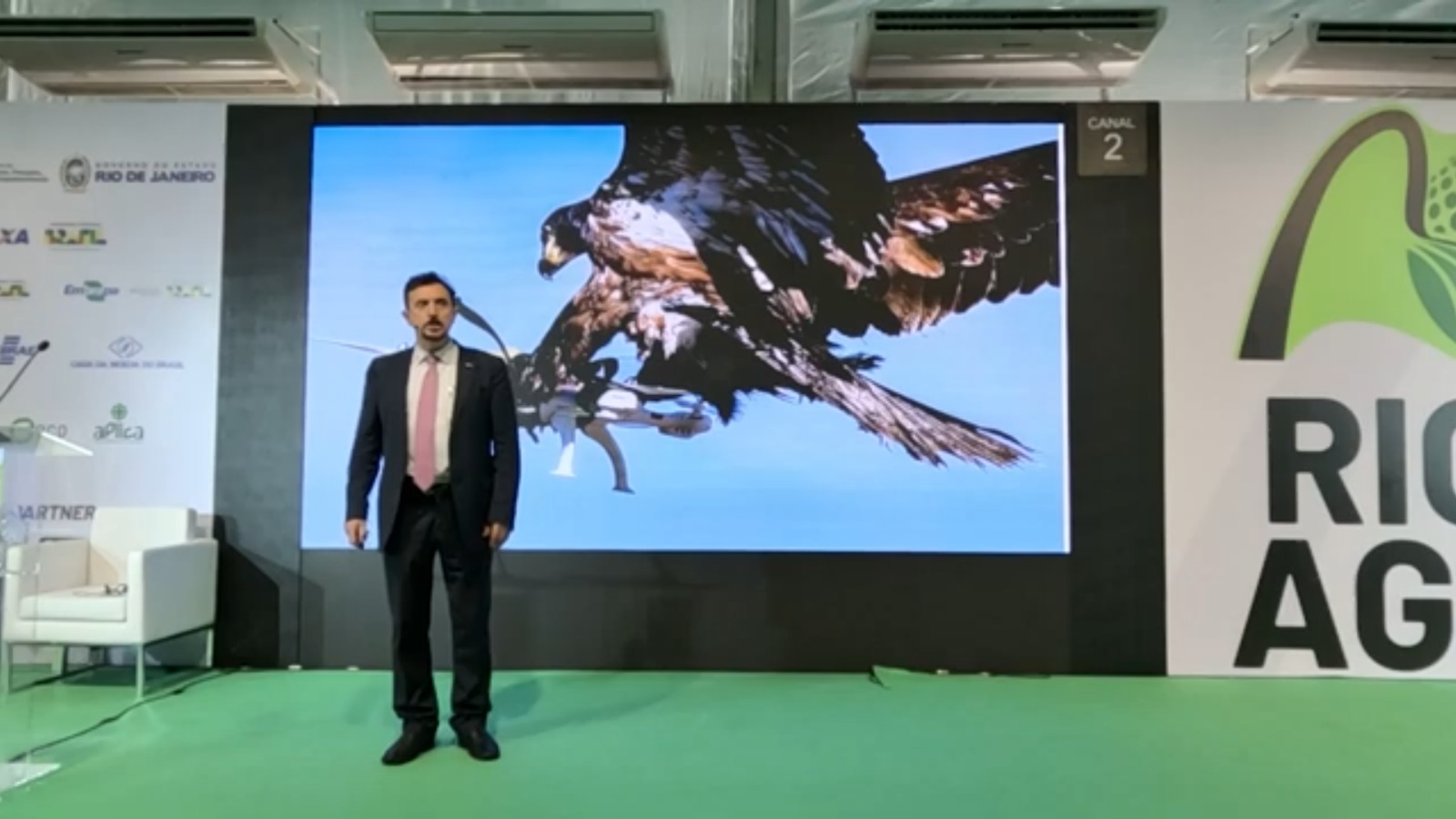 Dr Florian Kongoli, CEO of FLOGEN Technologies Inc. and Chairman of FLOGEN Stars Outreach, delivering the plenary lecture at Rio + Agro Congress in Rio de Janeiro, Brazil, August 2024