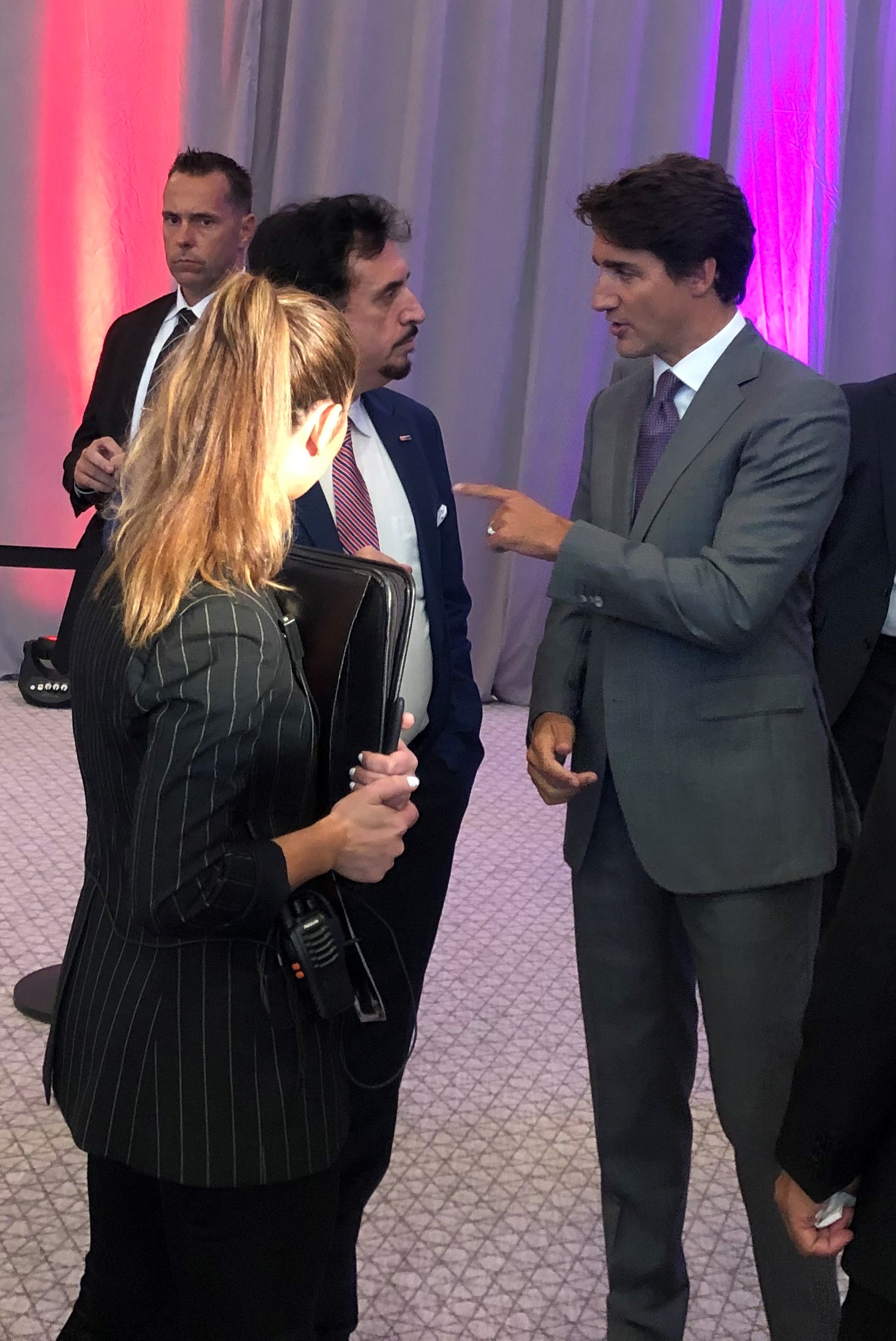 Dr. Florian Kongoli, President of SIPS and President of FLOGEN, in conversation with the Prime Minister of Canada, Justin Trudeau