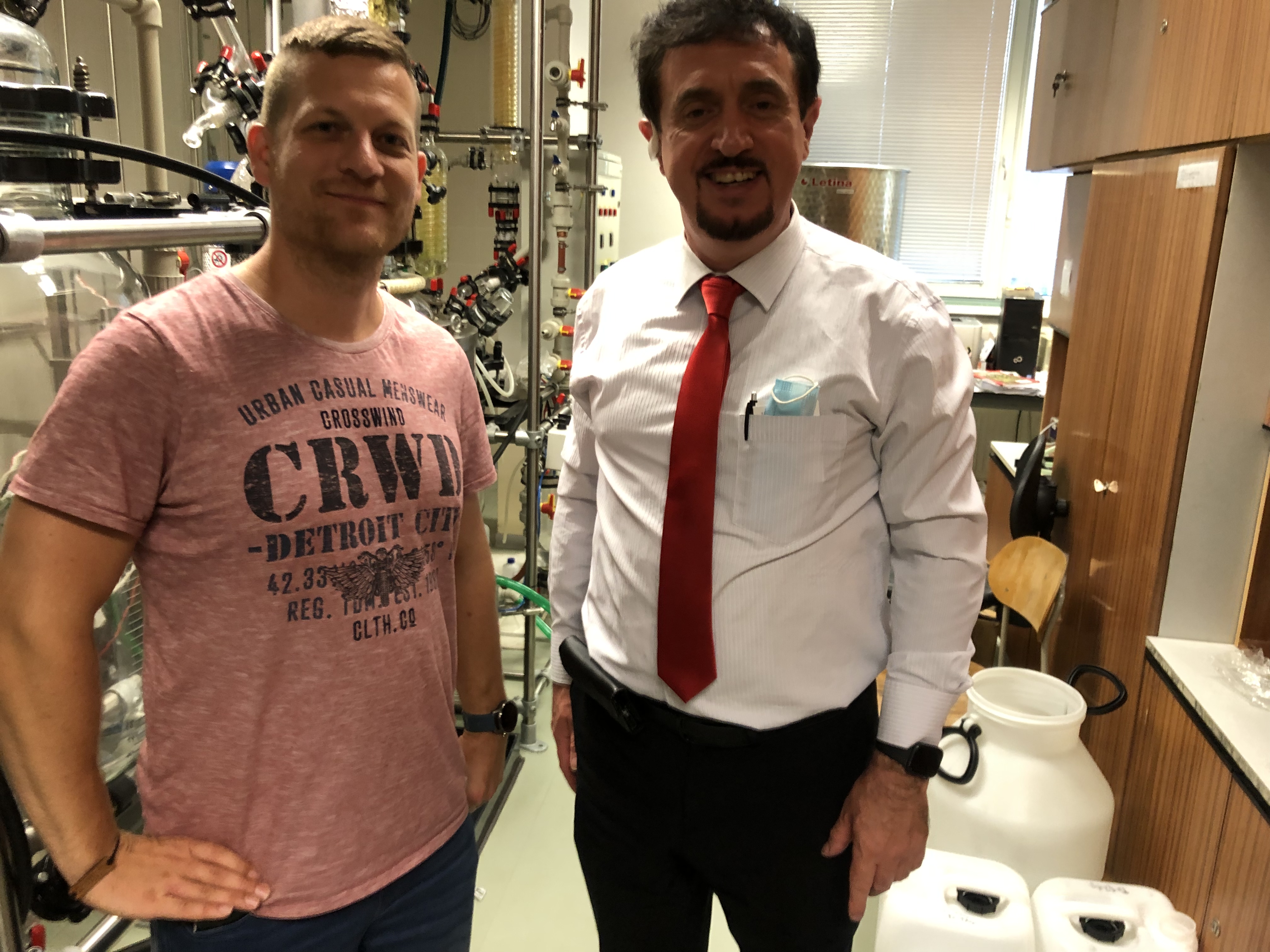 Dr Florian Kongoli, President of SIPS and President of FLOGEN, with the Prof. Karel Kolomazník at his laboratory pilot plant
