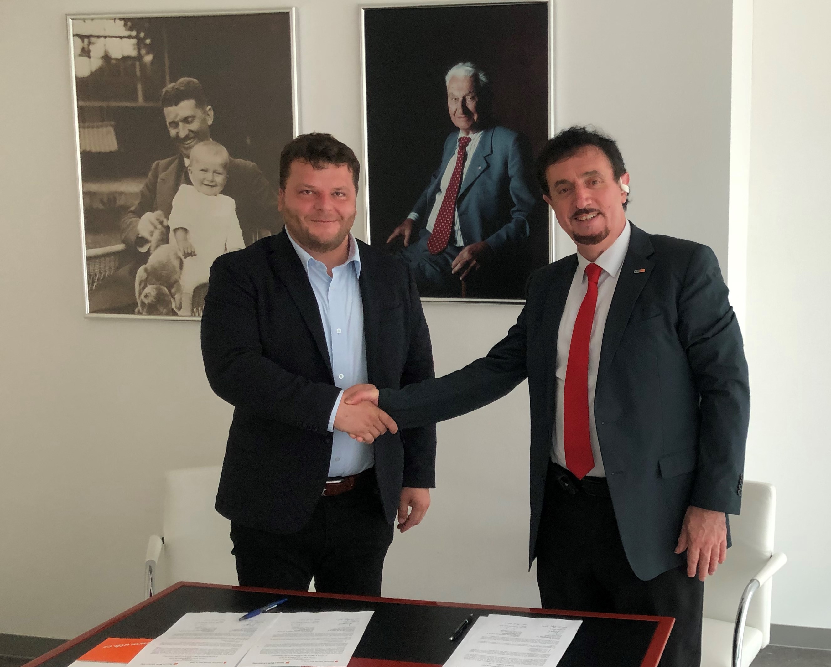 Dr Florian Kongoli, President of SIPS and President of FLOGEN, with the Rector of Tomas Bata University in Zlín, Prof. Vladimír Sedlařík after signing the partnership agreement between Tomas Bata University in Zlín and FLOGEN