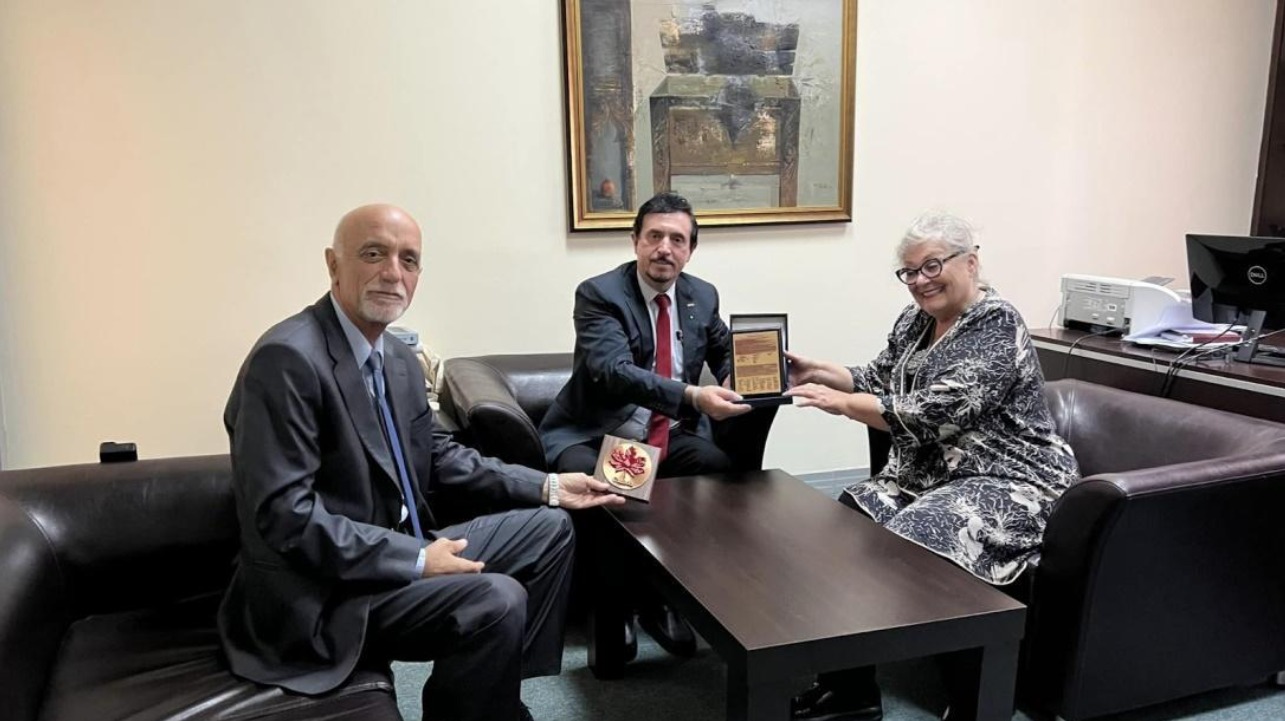 Dr. Florian Kongoli, CEO of FLOGEN Technologies Inc. and Chairman of FLOGEN Stars Outreach, with Prof. Justina Shiroka-Pula, the Vice President of the Academy of Sciences and Arts of Kosovo and Prof. Musa Rizaj from the University of Pristina, Academy of Sciences and Arts of Kosovo, October 2023