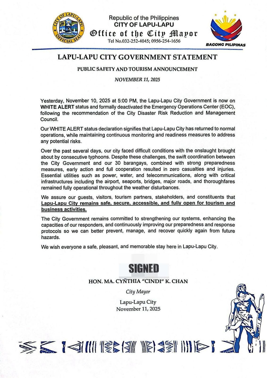 On November 11, 2025, the Lapu-Lapu City Government released a public safety and tourism announcement, which has been copied below: